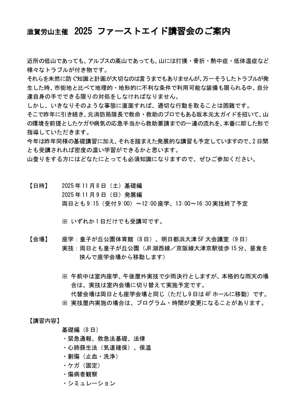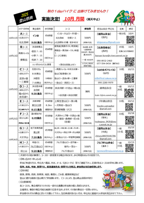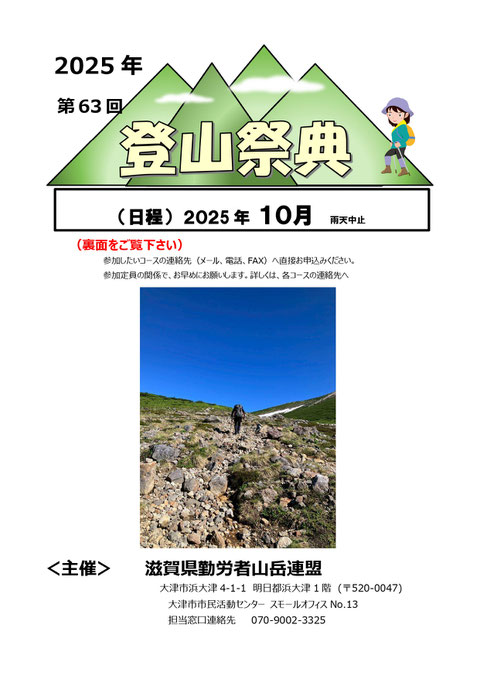 滋賀労山では加盟各山岳会の協力を得て四季を通じて次の活動を行っています。